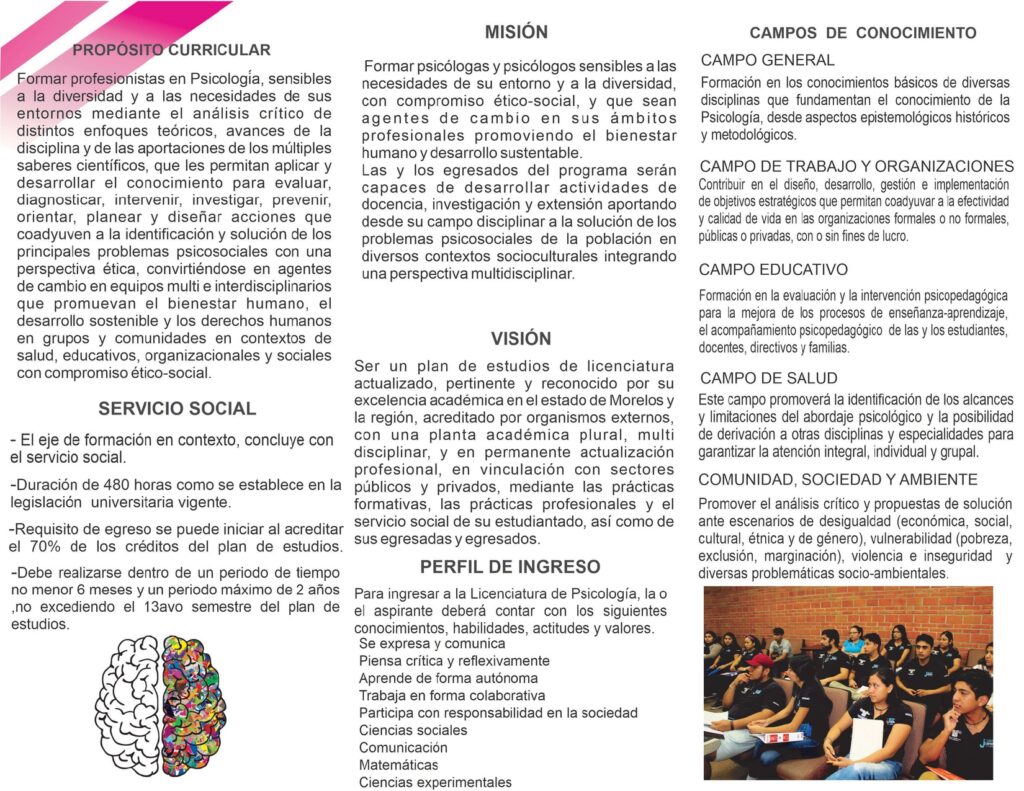 Formar profesionistas en Psicología, sensibles a la diversidad y a las necesidades de sus entornos mediante el análisis crítico de distintos enfoques teóricos, avances de la disciplina y de las aportaciones de los múltiples saberes científicos, que les permitan aplicar y desarrollar el conocimiento para evaluar, diagnosticar, intervenir, investigar, prevenir, orientar, planear y diseñar acciones que coadyuven a la identificación y solución de los principales problemas psicosociales con una perspectiva ética, convirtiéndose en gentes de cambio en equipos multi e interdisciplinarios que promuevan el bienestar humano, el desarrollo sostenible y los derechos humanos en grupos y comunidades en contextos de salud, educativos, organizacionales y sociales con compromiso ético-social.