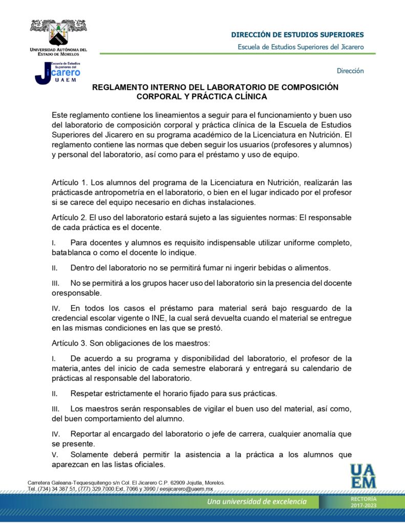 REGLAMENTO INTERNO DEL LABORATORIO DE COMPOSICIÓN CORPORAL Y PRÁCTICA CLÍNICA