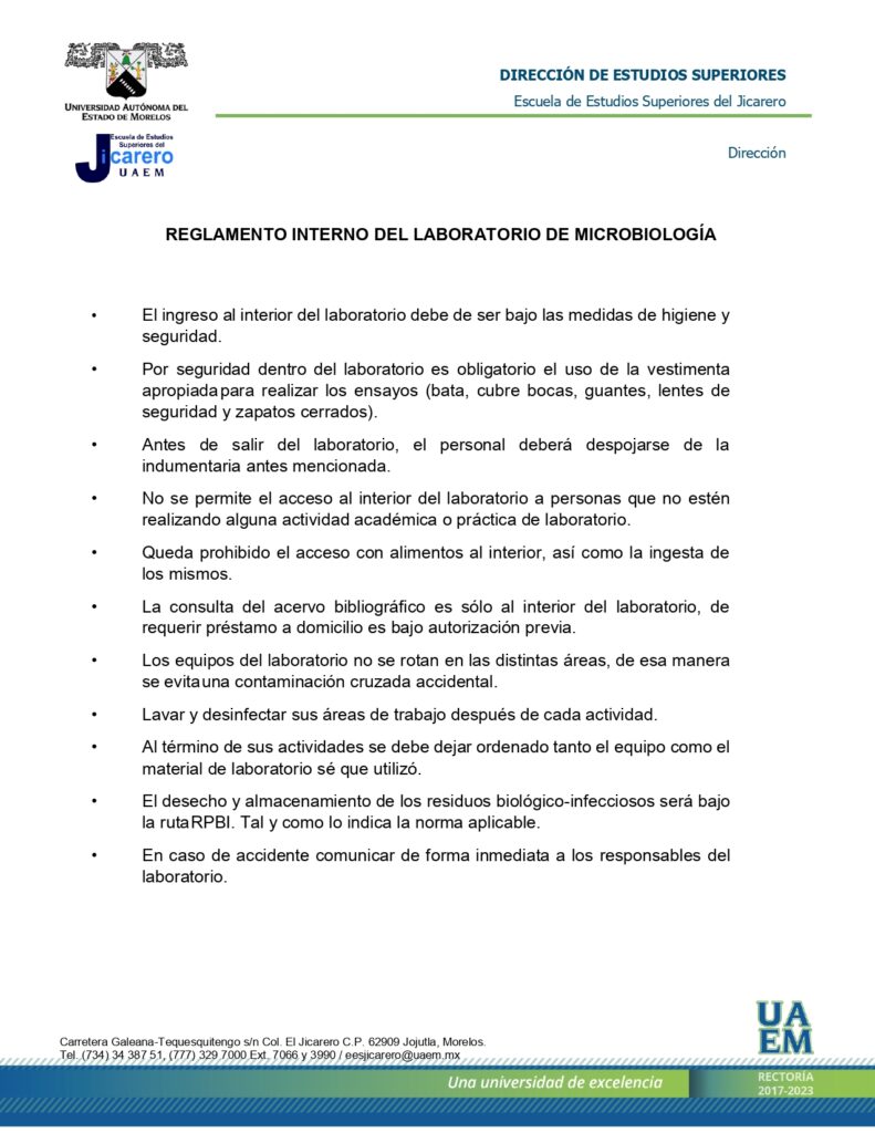 REGLAMENTO INTERNO DEL LABORATORIO DE MICROBIOLOGÍA